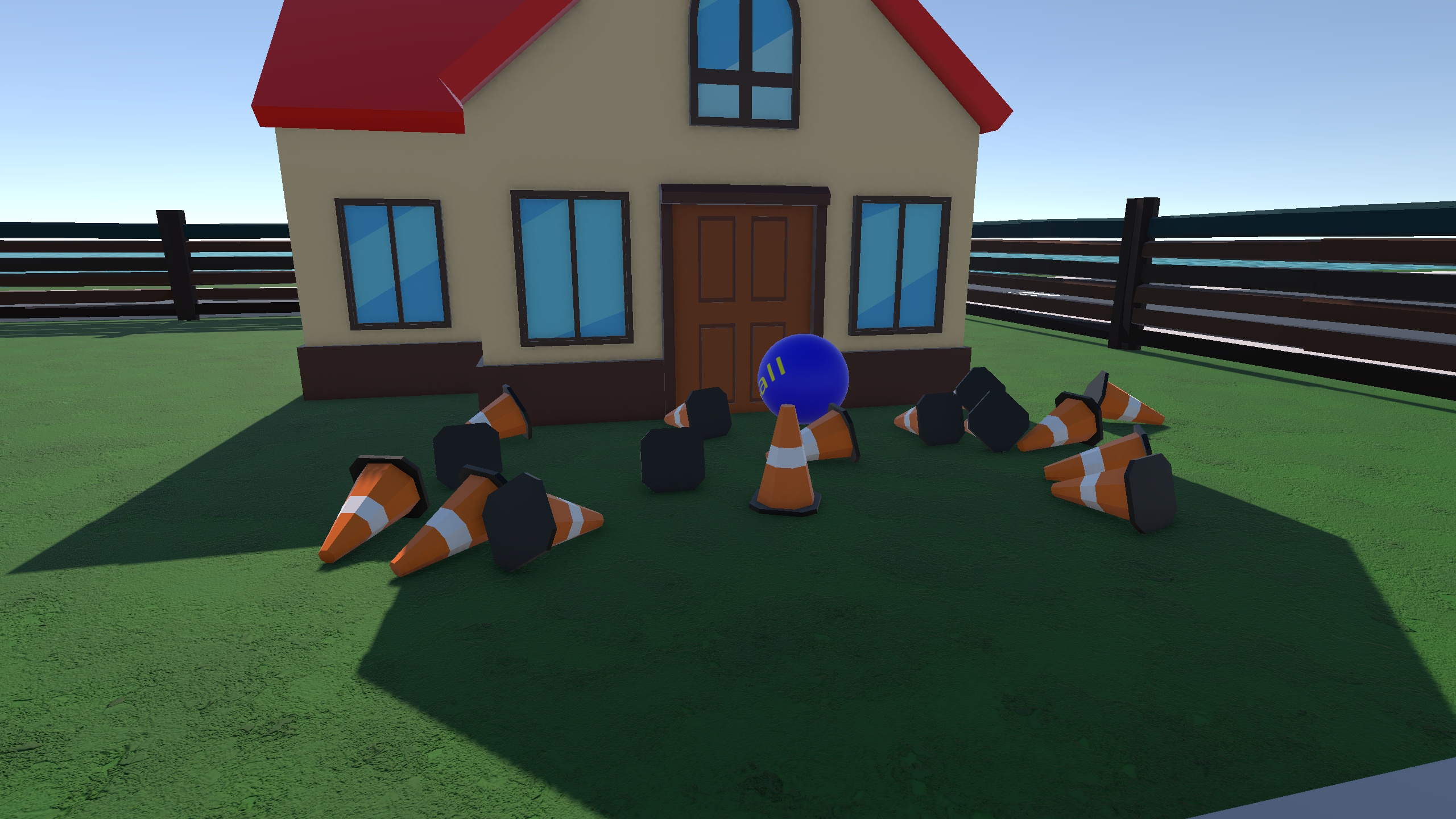 The physics of the game were nice and being able to pick up and throw the ball made the game mechanics stand out. House assets were nice, some music would make this game even better.