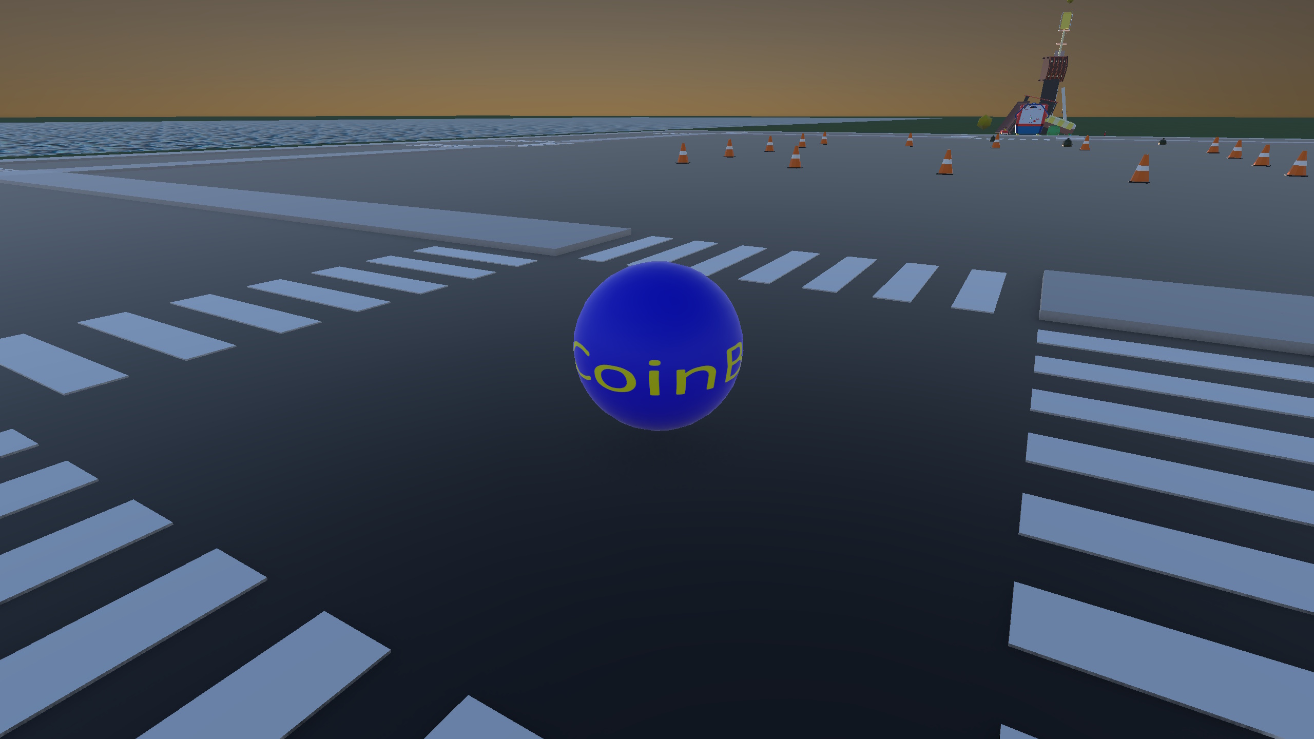 A small town exploration game, except you also have a CoinBall™-brand bouncy-ball. Wander around town and collect all 8 coins with your trusty CoinBall™-brand bouncy-ball! Kick, pickup, and throw your way to completing the collect-a-thon, but make sure to keep your eyes on CoinBall™-brand bouncy-ball! Featuring physics-based fun, pick-up-able traffic cones, a day/night cycle, and, of course, the CoinBall™-brand bouncy-ball!